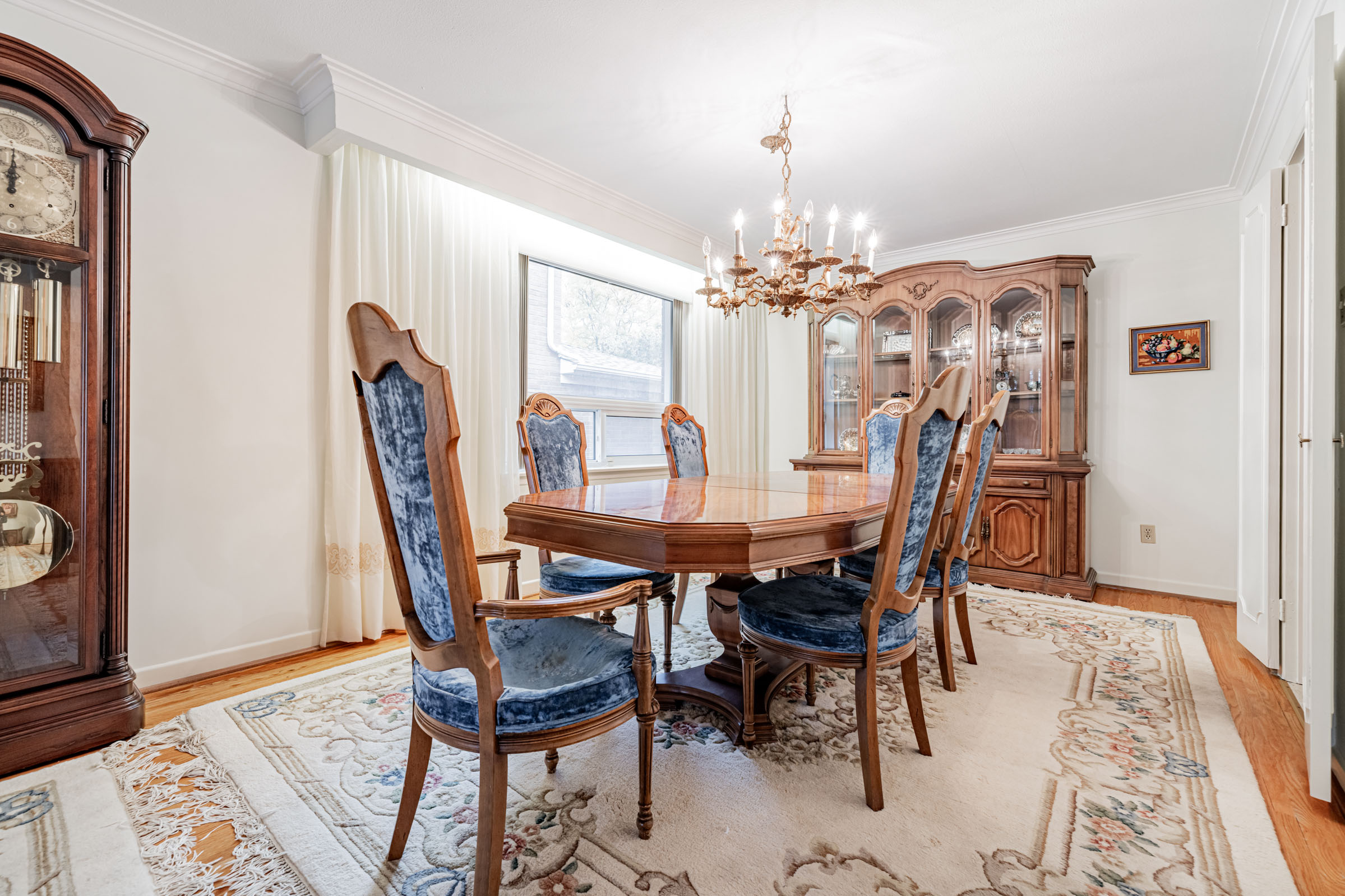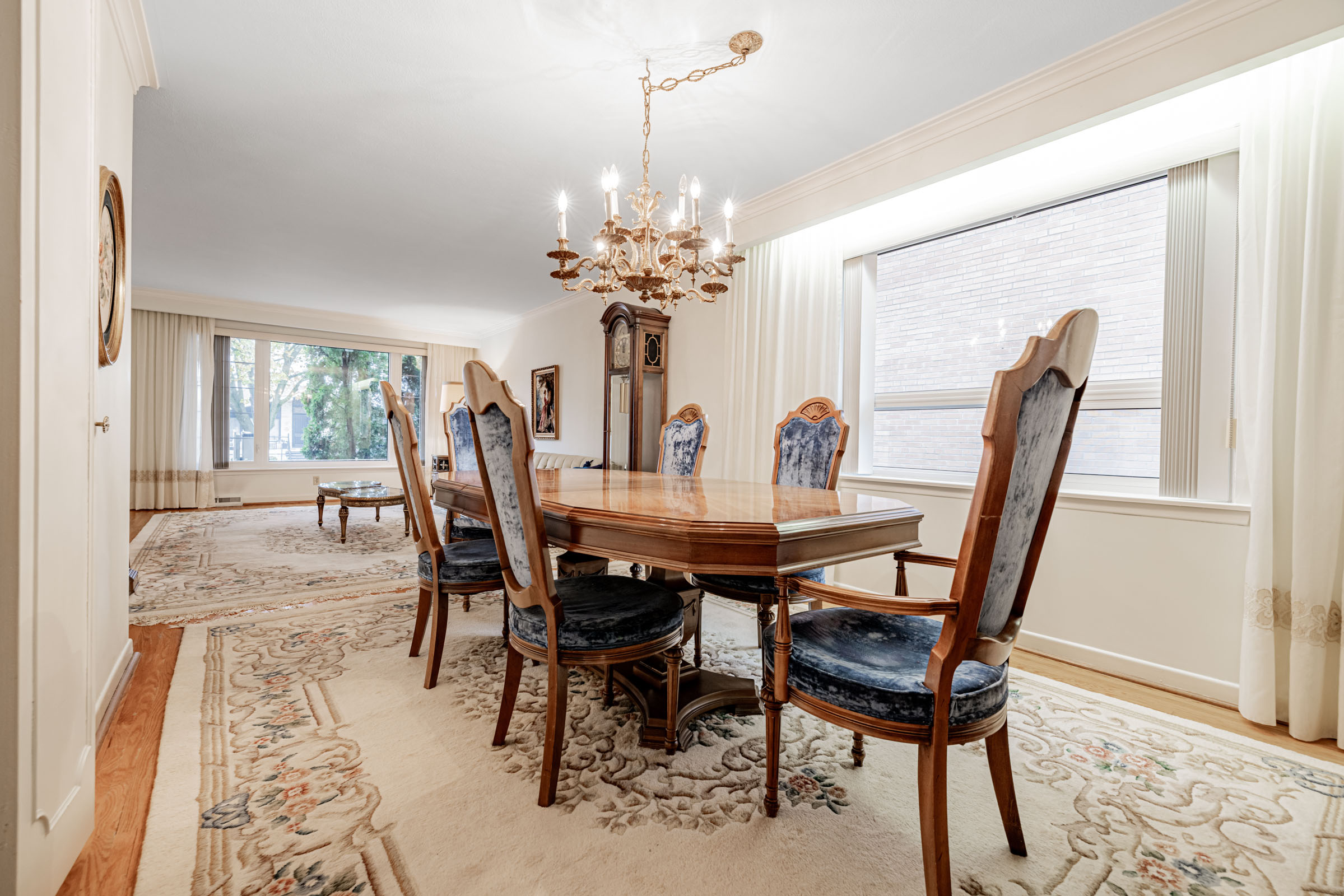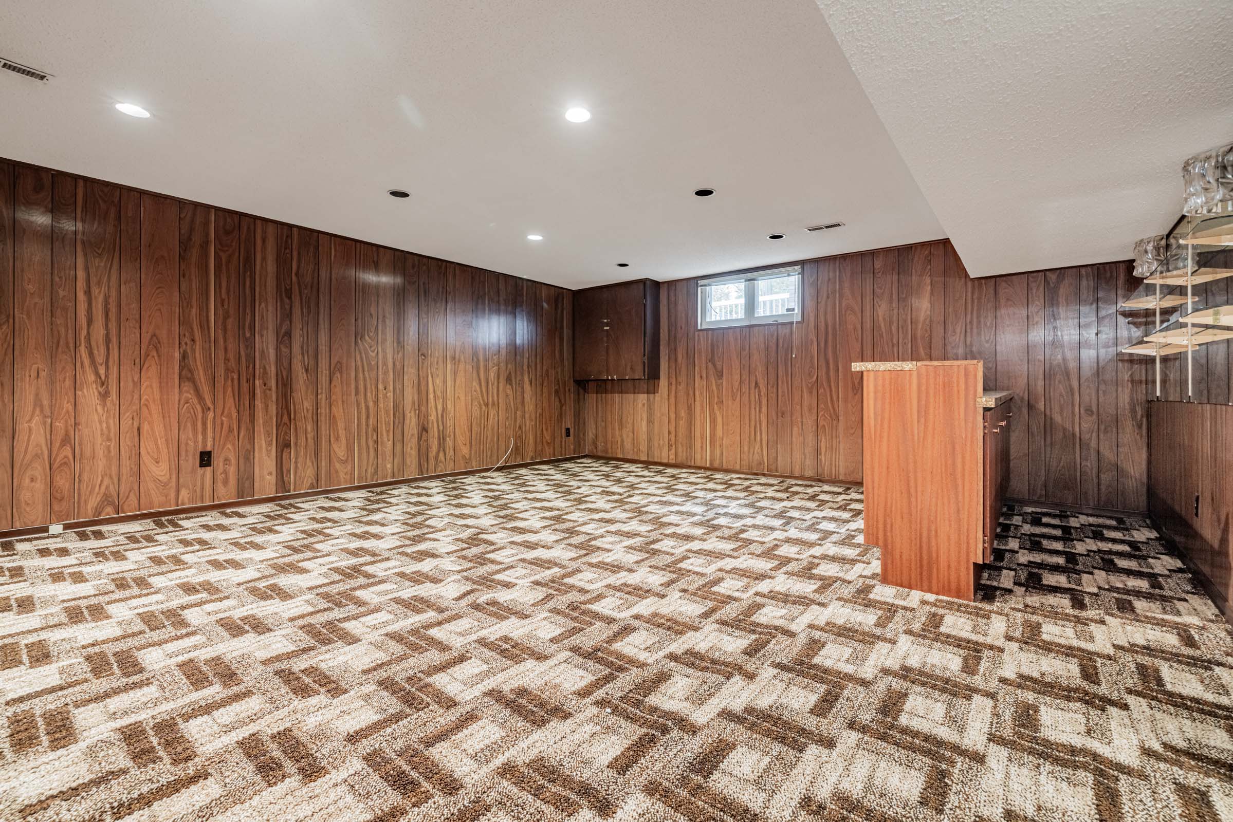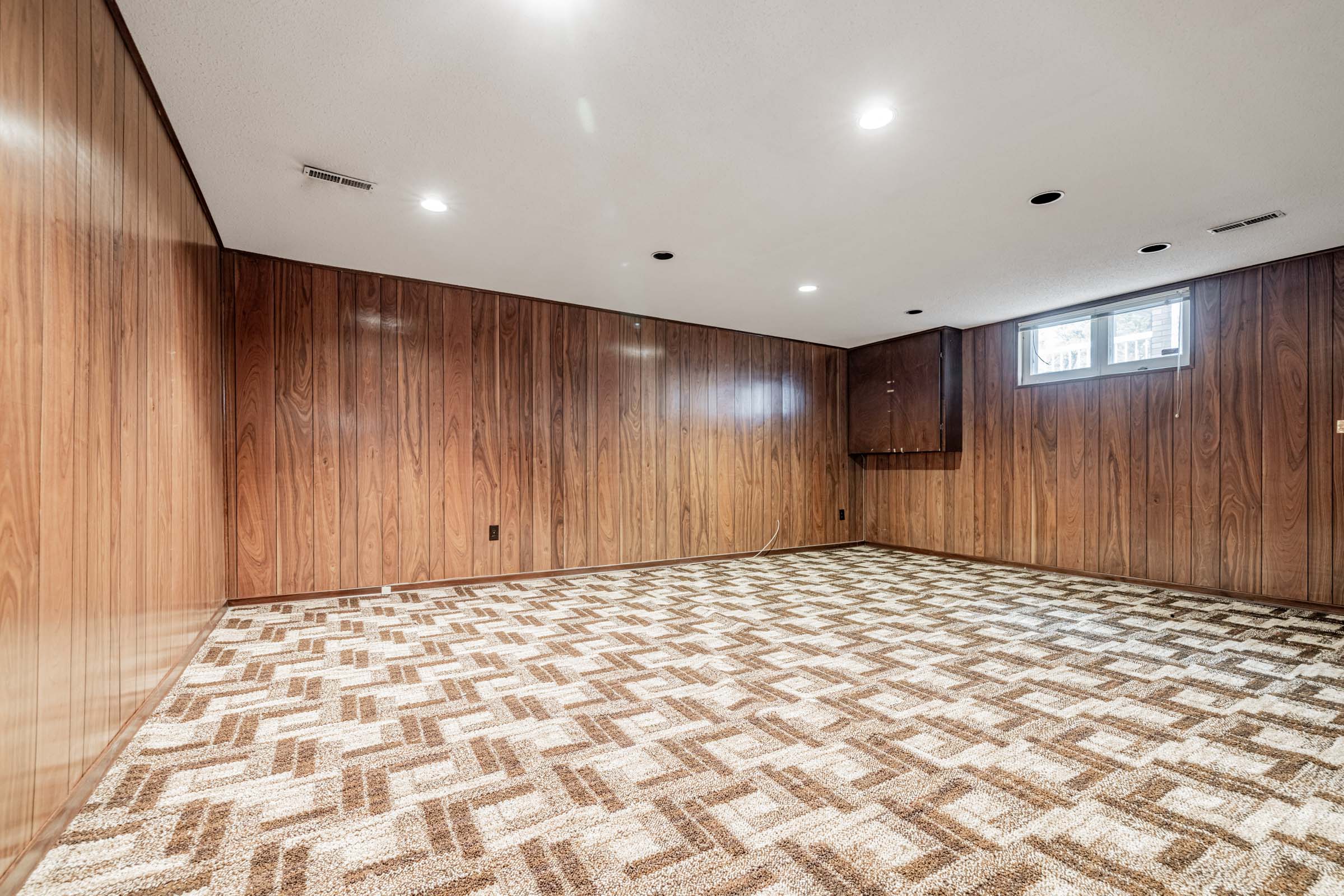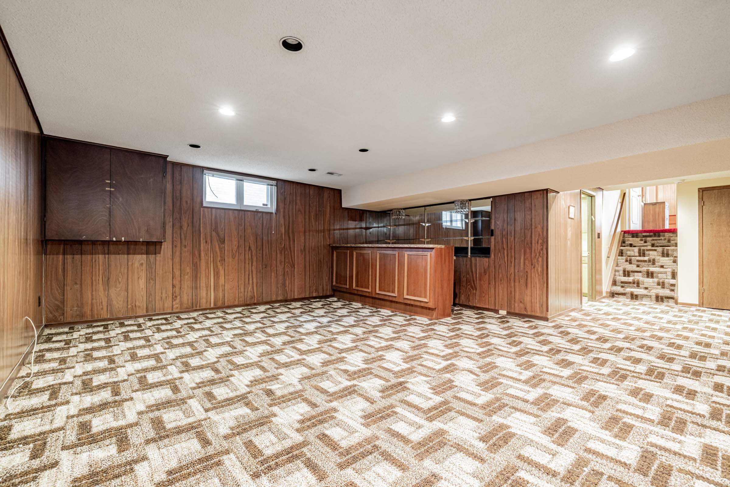Featuring 4 bedrooms and 3 bathrooms with endless practicality of over 3000 square feet of total living space. The home welcomes you with a generous open concept formal living and dining room with tons of room to entertain. Separate kitchen with a side walkout and eat-in kitchen for your everyday living. Step down into the den that envelopes you in warmth. You will find an extra bedroom or TV room. Built-Ins offer a work area and casual living room with walkout to the backyard. Plus a 2 pc powder room and laundry room are tucked away by the side entrance. The Basement boasts high ceilings, Custom Retro Bar, Full Kitchen and Cedar Closet. This retro backsplit offers a unique sense of warmth and character that modern layouts can’t replicate. Nestled on a quiet, mature street, the property is surrounded by long-time neighbours and lush, established trees, creating a peaceful setting in the heart of the city.